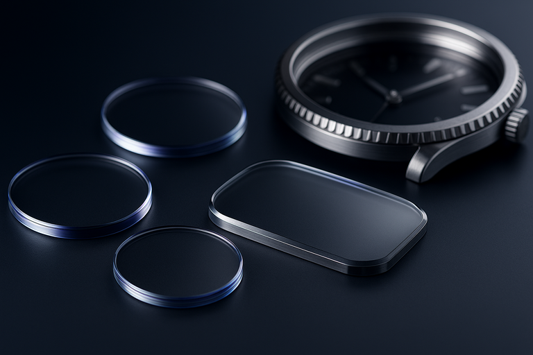 Ultra-hard, scratch-resistant sapphire glass components for luxury watches and precision instruments.
